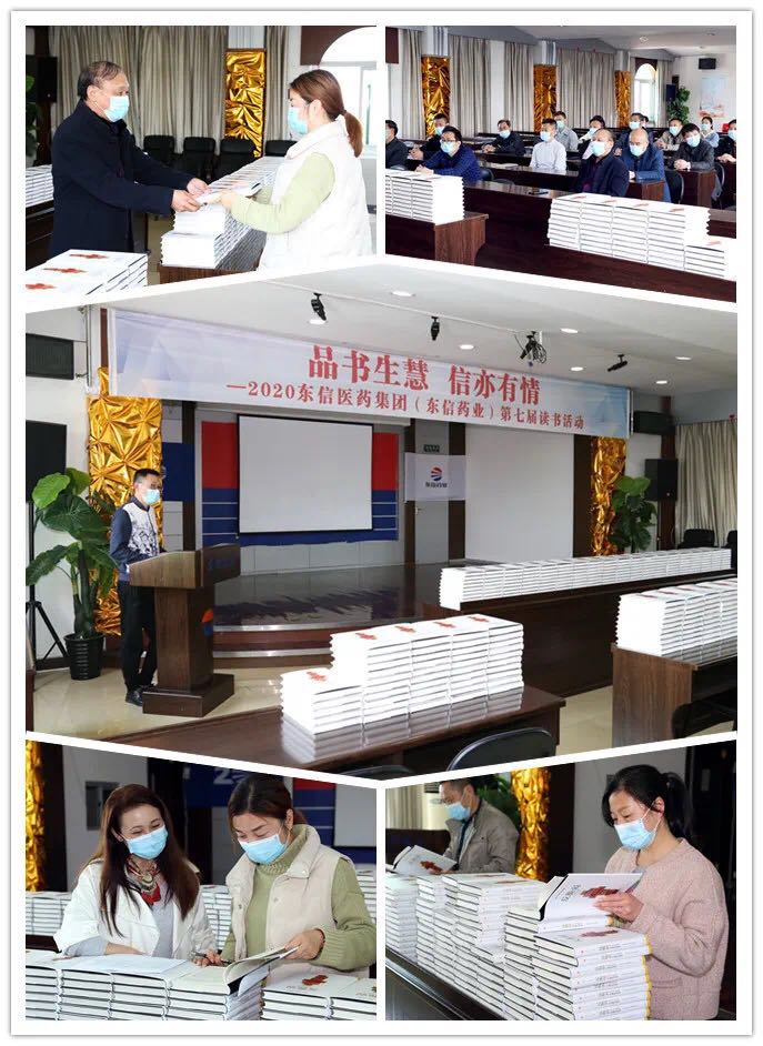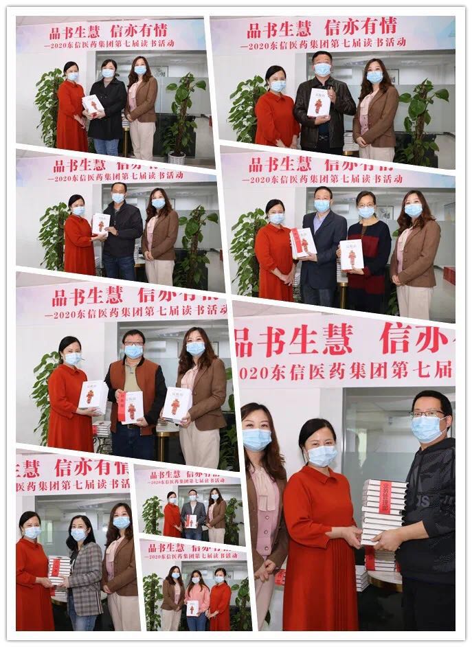 下午3點,東信醫(yī)藥全體人員準時觀看了讀書活動開幕視頻。隨后是授書儀式,在東信醫(yī)藥分會場,工會主席付均和婦委會主任肖迎紅為各部門代表分發(fā)了書籍。