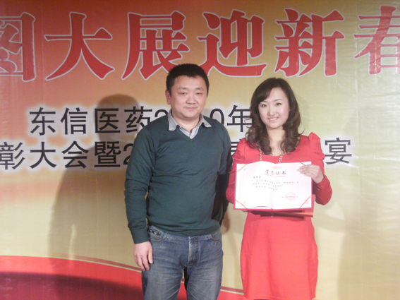 在過(guò)去的一年里,奮戰(zhàn)在各條戰(zhàn)線的東信人與公司同風(fēng)雨、共命運(yùn)、用不懈的努力為公司的發(fā)展做出了自己的貢獻(xiàn)。一首深情的《回家》之后,晚會(huì)進(jìn)入東信醫(yī)藥2010年度總結(jié)表彰大會(huì)的激情時(shí)刻。公司總經(jīng)理陳向先生及銷(xiāo)售部、業(yè)務(wù)管理部、市場(chǎng)部、商務(wù)部的主要領(lǐng)導(dǎo)揭曉了“東信醫(yī)藥2010年度總結(jié)表彰大會(huì)”的各個(gè)獎(jiǎng)項(xiàng),向贏得榮譽(yù)和尊重的先進(jìn)團(tuán)隊(duì)和先進(jìn)個(gè)人頒發(fā)了獎(jiǎng)品和證書(shū)。
