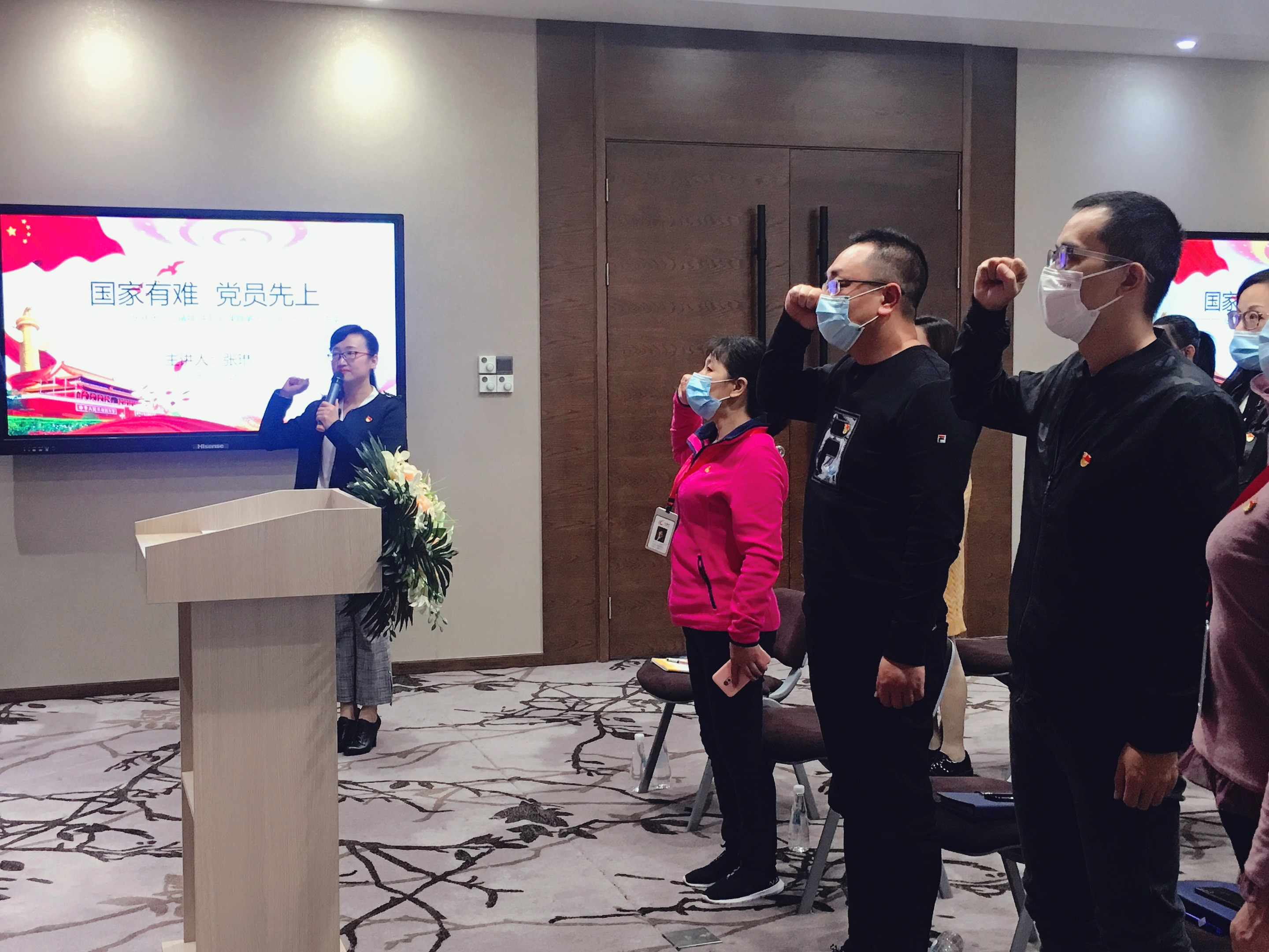 國家有難,黨員先上!多難興邦,興邦有我!千千萬萬的黨員們用行動(dòng)擦亮了黨徽、用作為堅(jiān)守了初心、用實(shí)際行動(dòng)踐行了入黨誓言。黨課最后,在莊嚴(yán)的黨旗下,所有黨員一起重溫了入黨誓詞,時(shí)刻牢記和堅(jiān)守一名共產(chǎn)黨員的初心和使命!