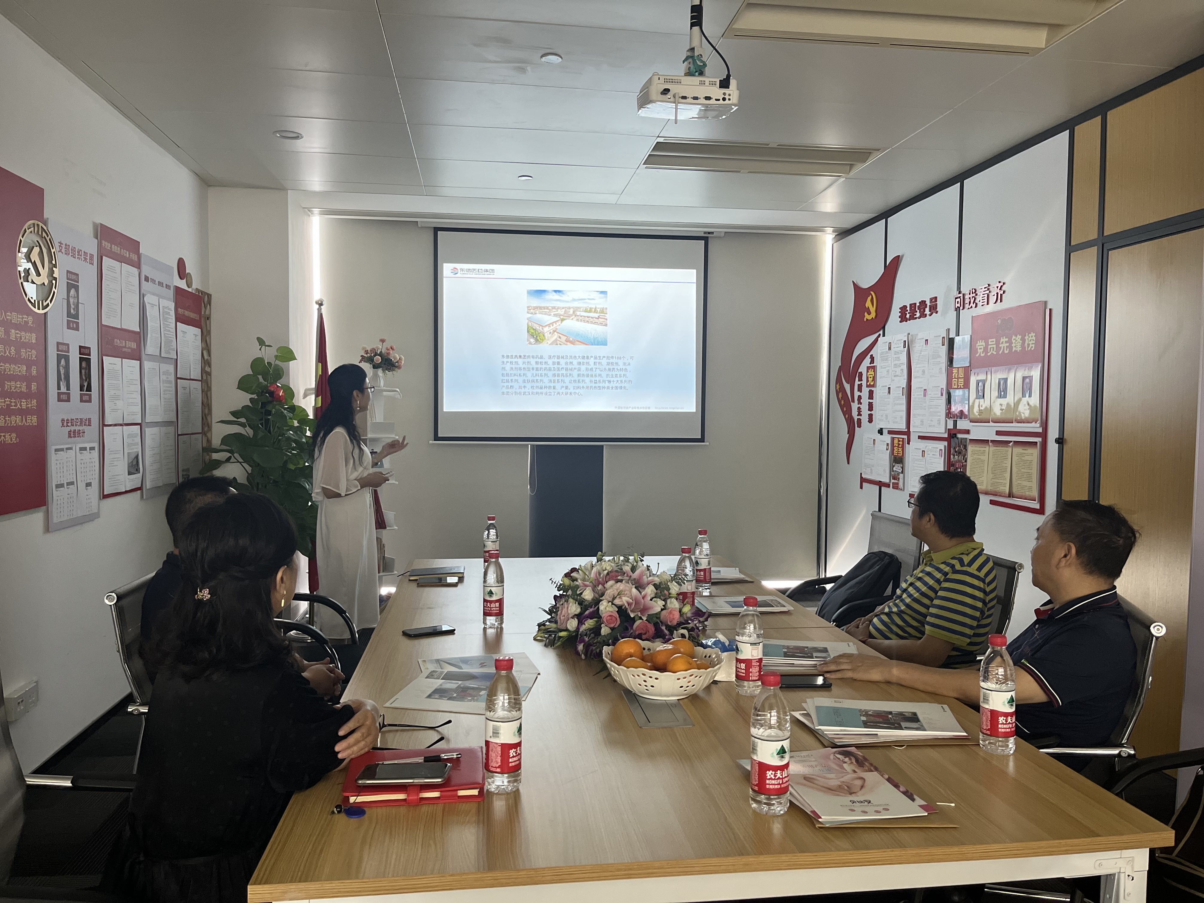 9月27日,中共武漢市委統(tǒng)戰(zhàn)部萬處長和民盟武漢市委秦秘書長蒞臨東信醫(yī)藥集團參觀考察 ,湖北東信醫(yī)藥有限公司總經(jīng)理黃少偉、黨支部書記張琳、武漢美洳生物科技有限責任公司副總經(jīng)理付均陪同考察。