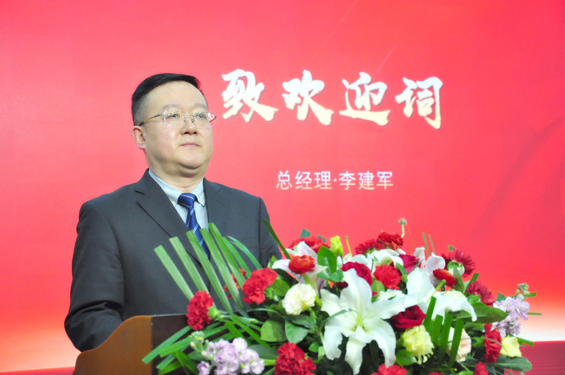 上圖:東信醫(yī)藥總經(jīng)理李建軍先生致歡迎詞