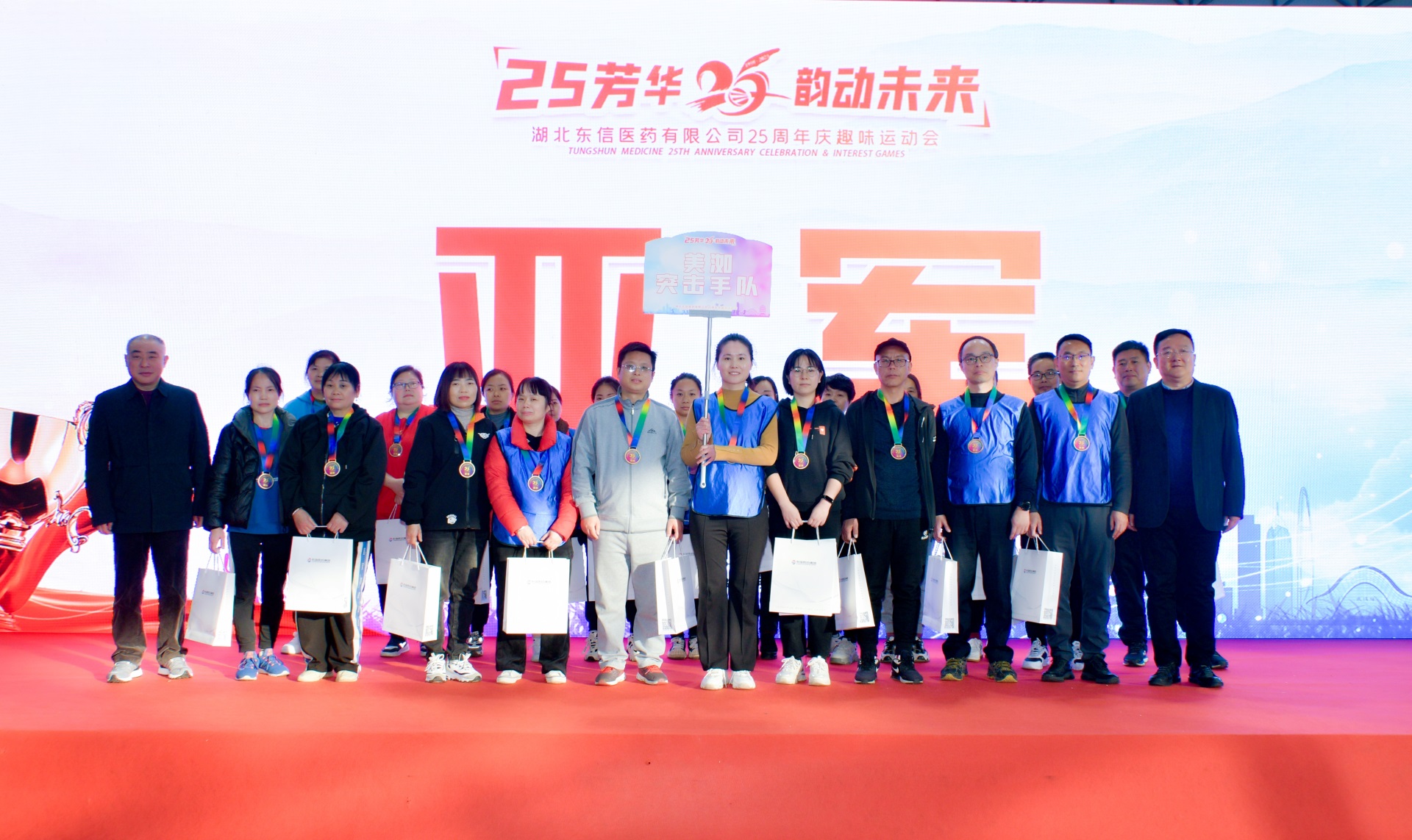 2023年11月16日,湖北東信醫(yī)藥有限公司25周年慶典在武漢隆重舉行,東信醫(yī)藥集團(tuán)董事長田南希、湖北東信醫(yī)藥有限公司總經(jīng)理李建軍、武漢東信醫(yī)藥科技有限責(zé)任公司總經(jīng)理陳長根出席慶?;顒?。武漢東信醫(yī)藥科技有限責(zé)任公司、武漢美洳生物科技有限責(zé)任公司全體員工應(yīng)邀參加了“25芳華 韻動未來——東信醫(yī)藥25周年慶趣味運動會”,共同見證這個令人難忘的時刻。