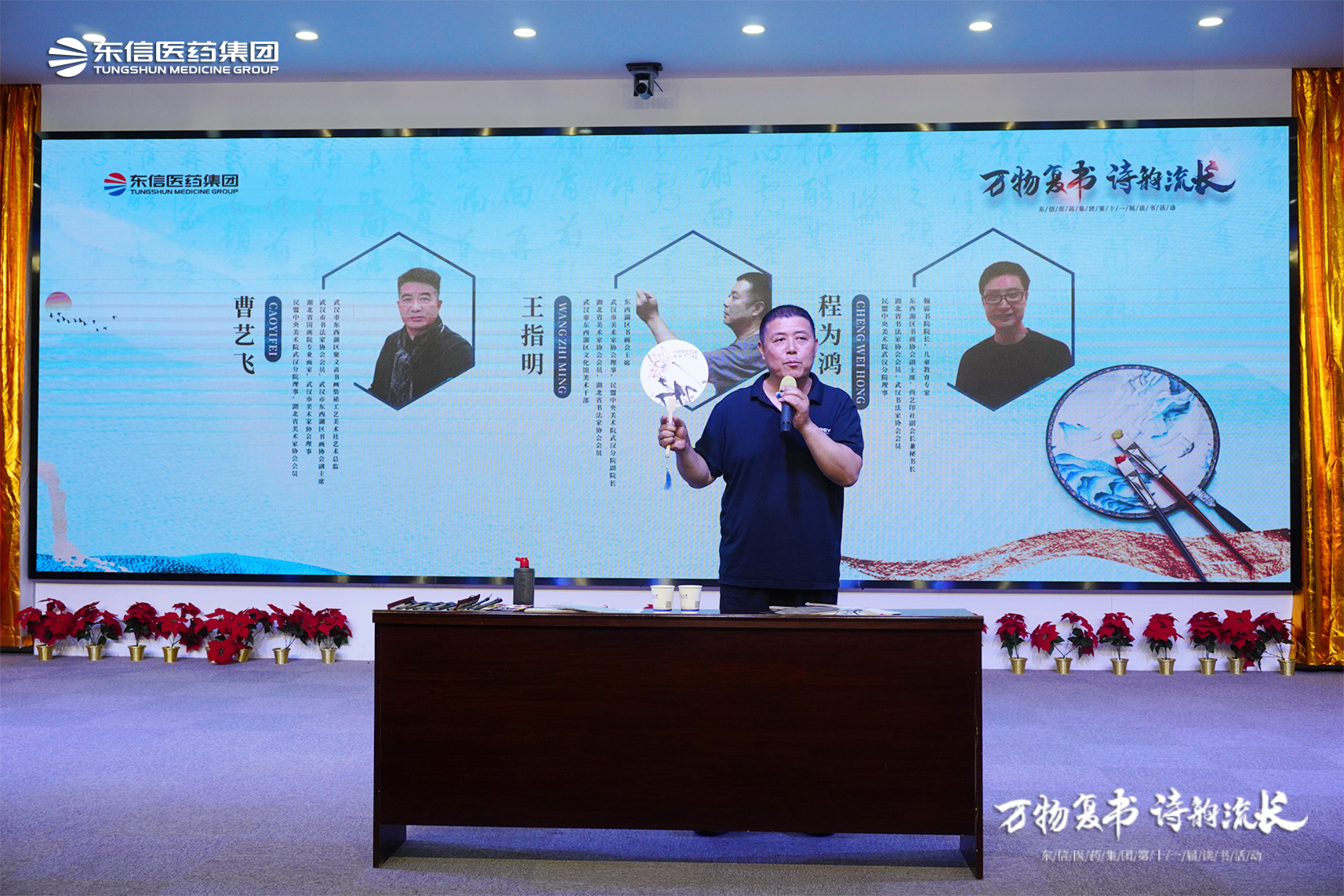 程為鴻老師則為大家?guī)砹藭ǖ镊攘ΑK虼蠹医榻B了書法的起源和演變,展示了不同字體的書寫技巧。