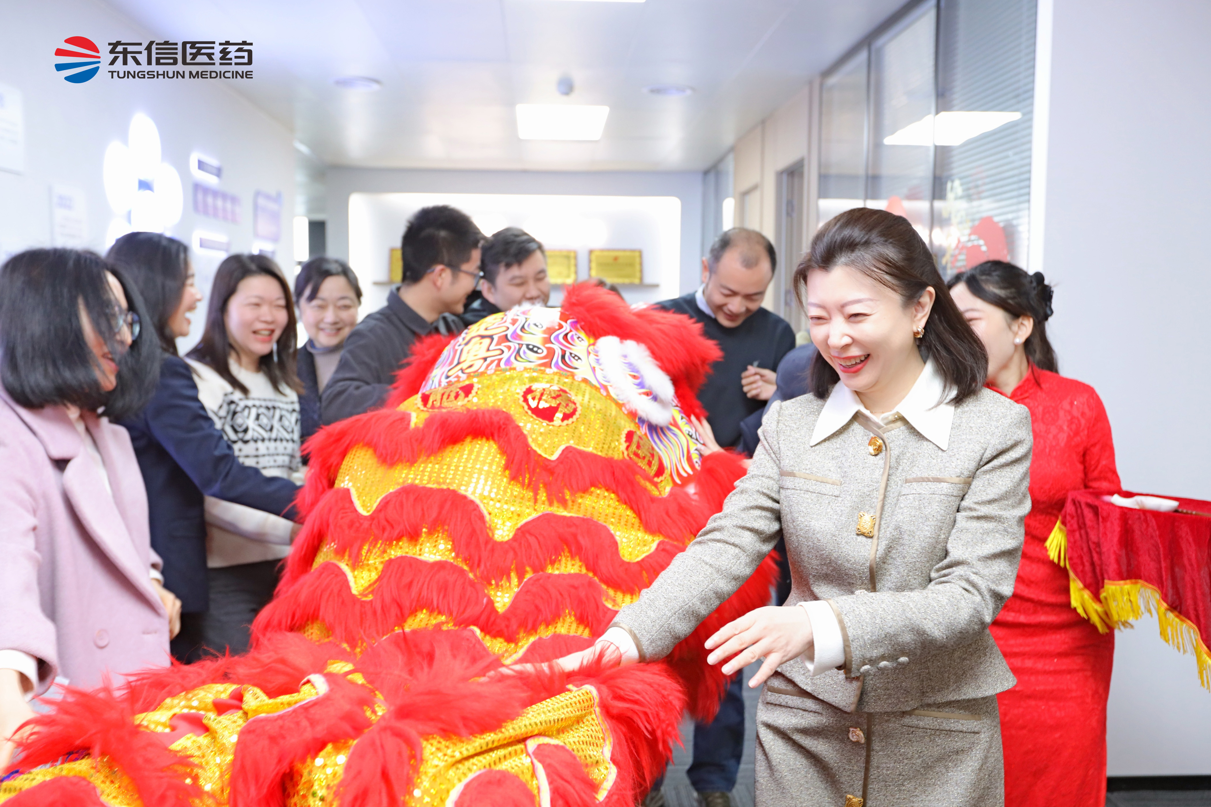 緊隨其后的祥獅點睛采青環(huán)節(jié),更是將現(xiàn)場的氣氛推向了頂點。在歡快的鑼鼓聲中,靈動的祥獅翻騰跳躍,它們矯健的身姿和威武的氣勢,不僅為慶典增添了濃厚的喜慶氛圍,更寓意著東信醫(yī)藥在新的起點上必將生機勃勃、蒸蒸日上。