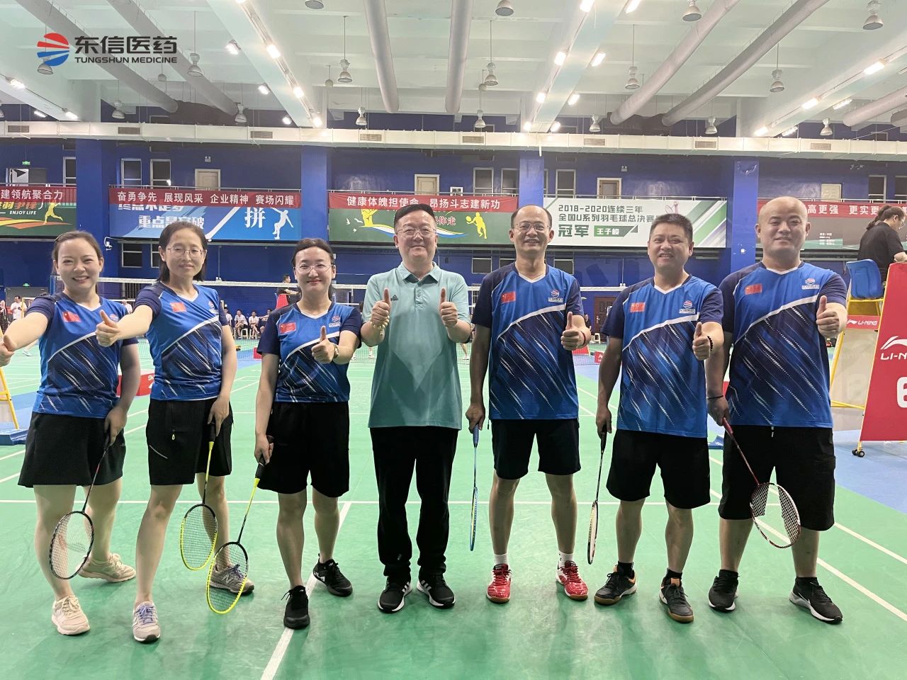 比賽當(dāng)日,隊(duì)員們統(tǒng)一著裝,以飽滿的精神狀態(tài)投入比賽,充分展現(xiàn)了東信醫(yī)藥團(tuán)結(jié)進(jìn)取的企業(yè)形象。