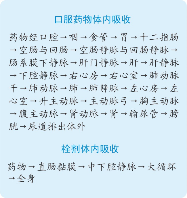 口服藥物與栓劑體內(nèi)吸收對(duì)比見下圖